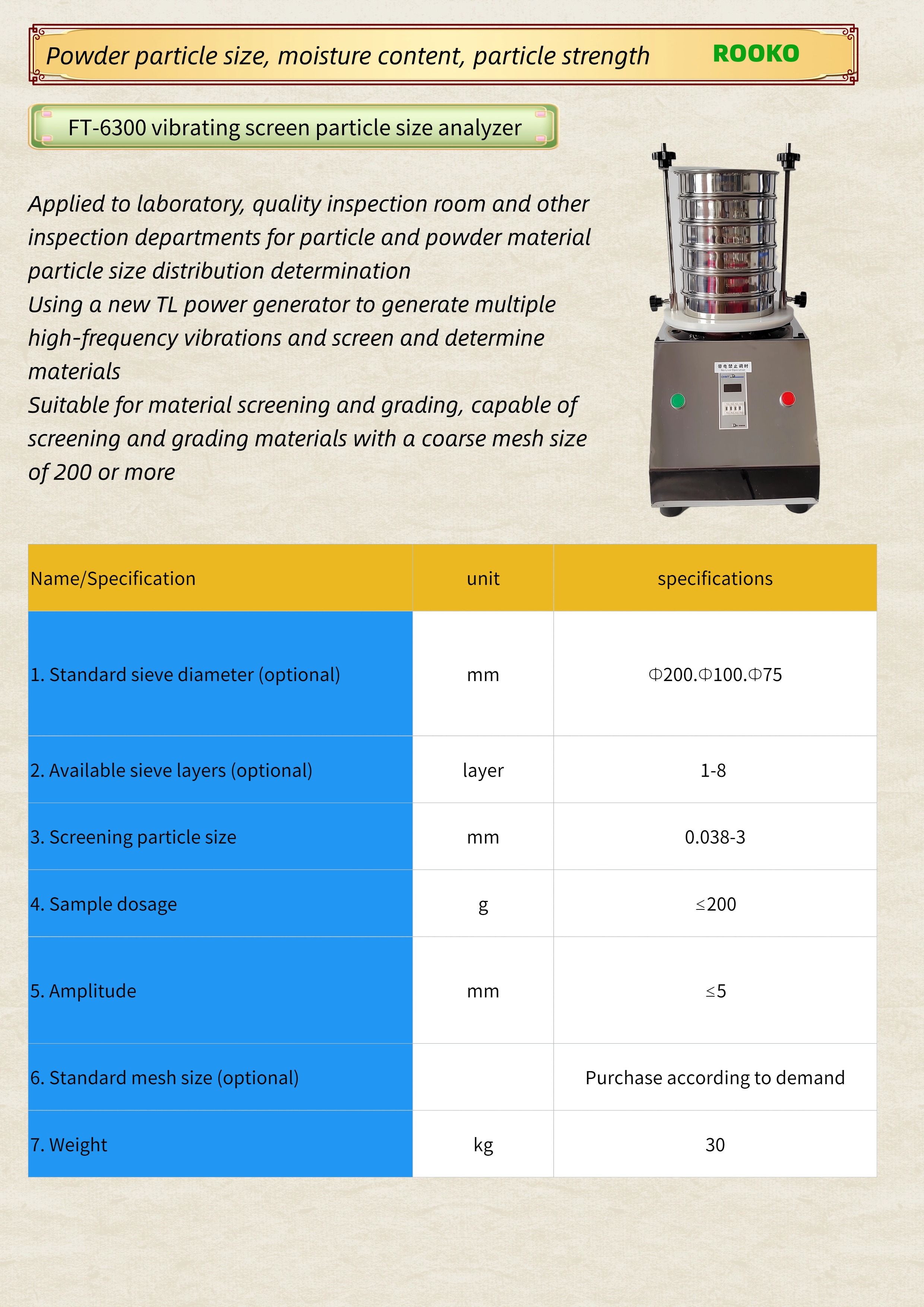 FT-6300 vibrating screen particle size analyzer